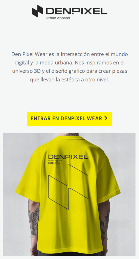 Den Pixel Wear es la intersección entre el mundo digital y la moda urbana. Nos inspiramos en el universo 3D y el diseño gráfico para crear piezas que llevan la estética a otro nivel.