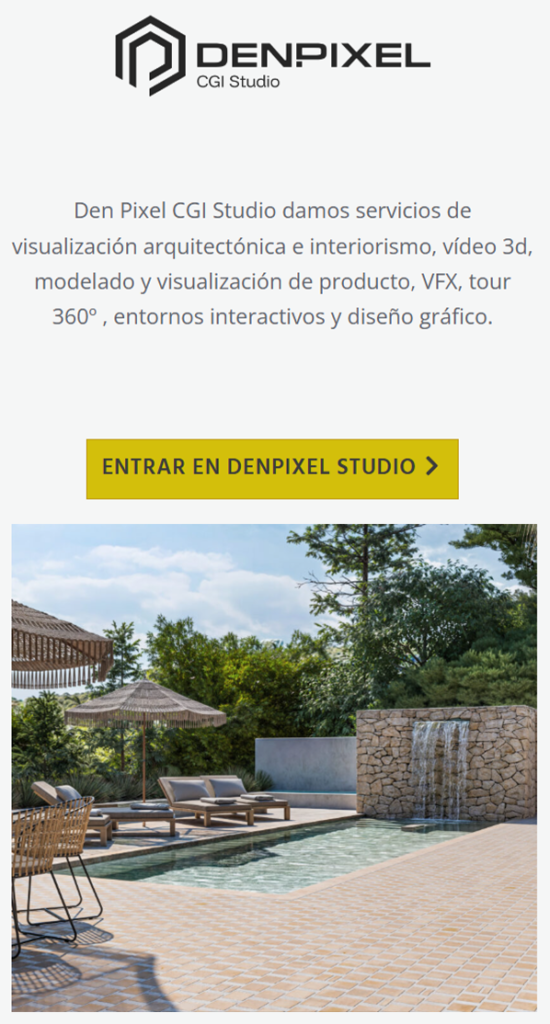 Den Pixel CGI Studio damos servicios de visualización arquitectónica e interiorismo, vídeo 3d, modelado y visualización de producto, VFX, tour 360º , entornos interactivos y diseño gráfico.